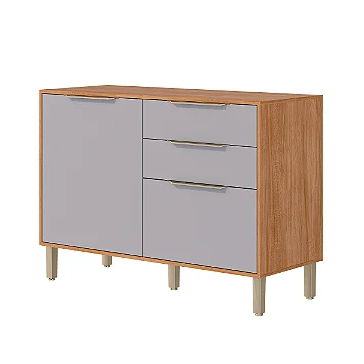 Com design elegante nas cores Cinamomo e Platina, conta com 2 portas com dobradiças slow motion, que proporcionam fechamento suave, além de 2 gavetas espaçosas com corrediças de qualidade para um deslizar suave. Os puxadores em ABS na cor Gold agregam um toque de requinte, enquanto as prateleiras internas oferecem melhor aproveitamento do espaço.