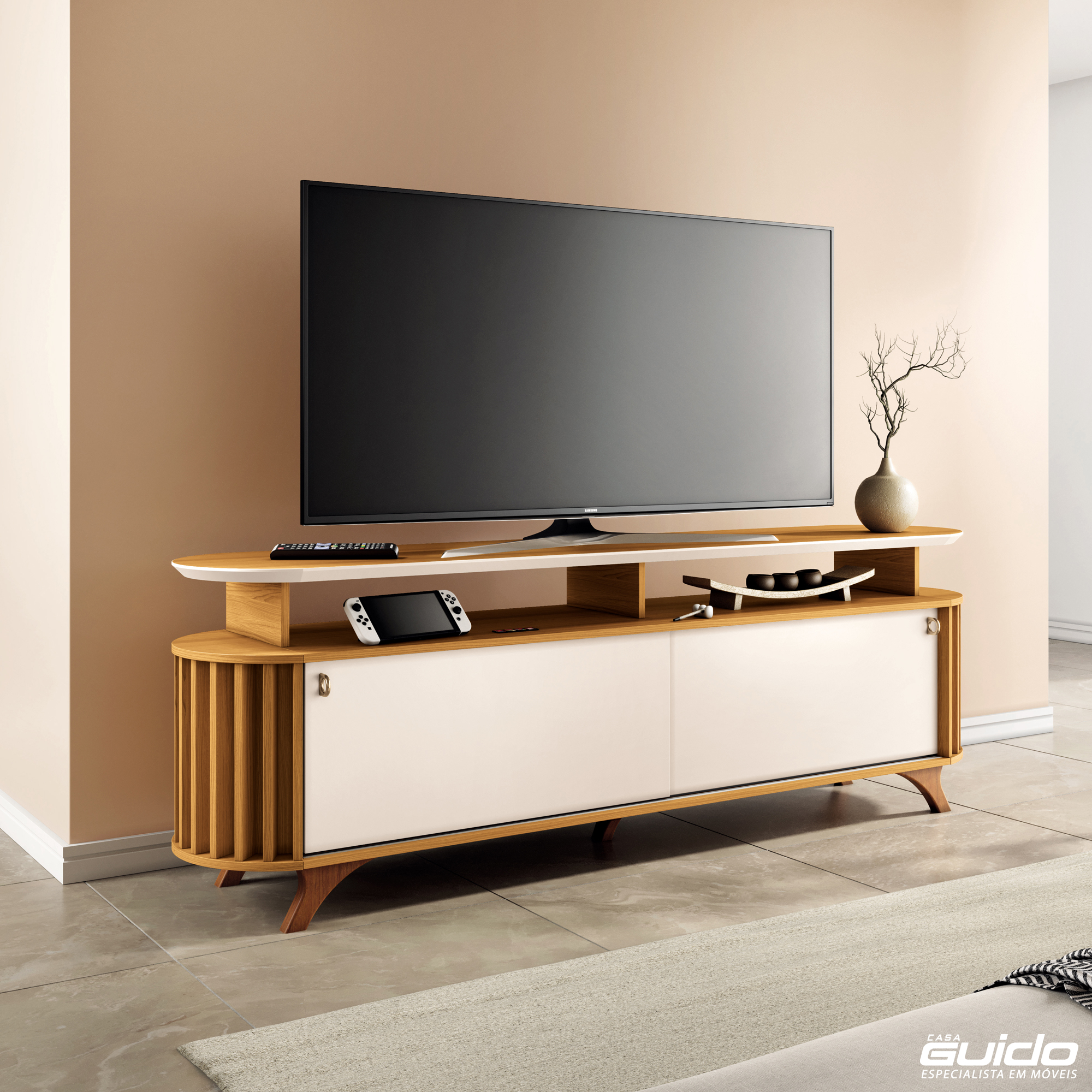 A Bancada HB Alba é uma opção encantadora para quem busca funcionalidade e design inovador. Projetada para acomodar TVs de até 70 polegadas, sua estética curvada e detalhes sofisticados tornam qualquer ambiente mais acolhedor e elegante.