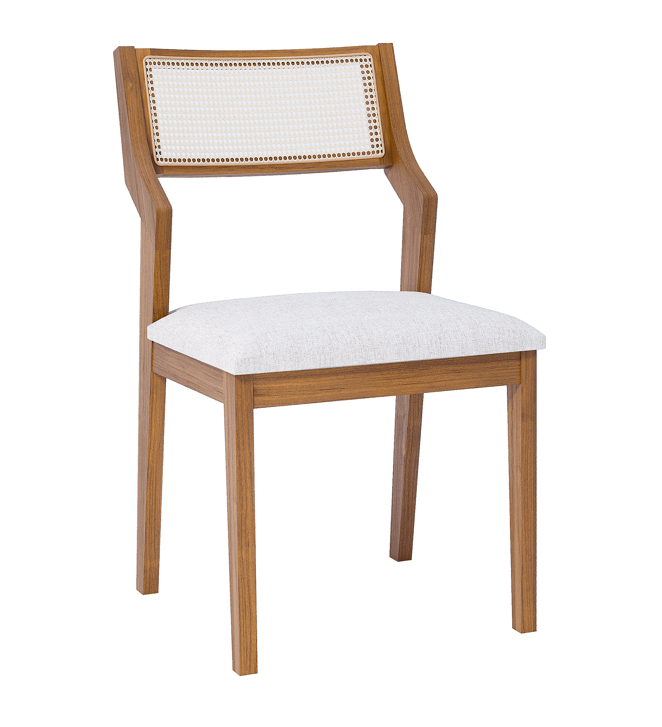 Com estrutura em madeira e acabamento que valoriza os tons naturais, ela traz um ar acolhedor e atemporal. O grande destaque fica por conta do encosto em tela sintética, que adiciona leveza visual e um toque artesanal sofisticado, criando uma estética que conversa com diferentes estilos de decoração.