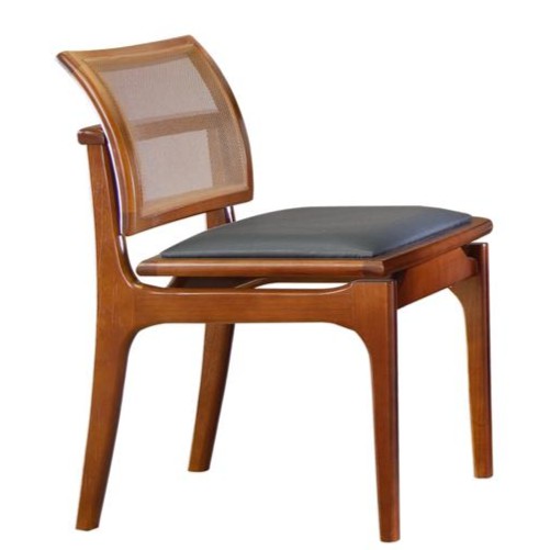 Cadeira de madeira maciça tauari muito bem trabalhada, espuma de assento d26 e tecido corino