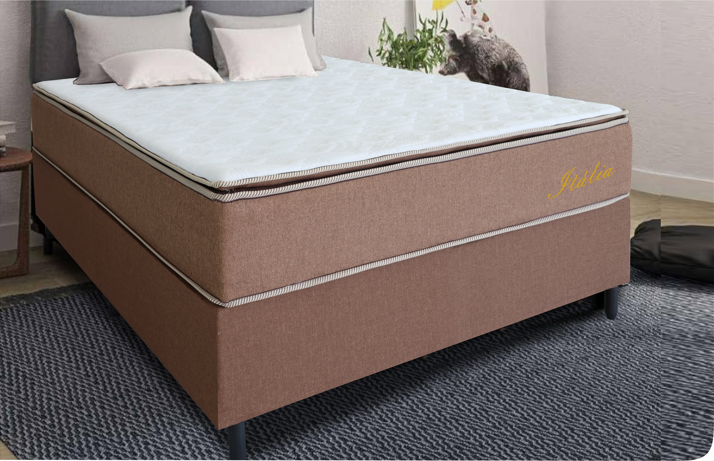O Conjunto Box Caza Nobre Itália Ortopedic é a combinação ideal de conforto, resistência e suporte para quem busca noites de sono tranquilas e revigorantes. Com estrutura robusta, colchão ortopédico de alto desempenho e revestimento sofisticado em linho marrom, ele foi projetado especialmente para alinhar corretamente a coluna e aliviar os pontos de pressão do corpo.
