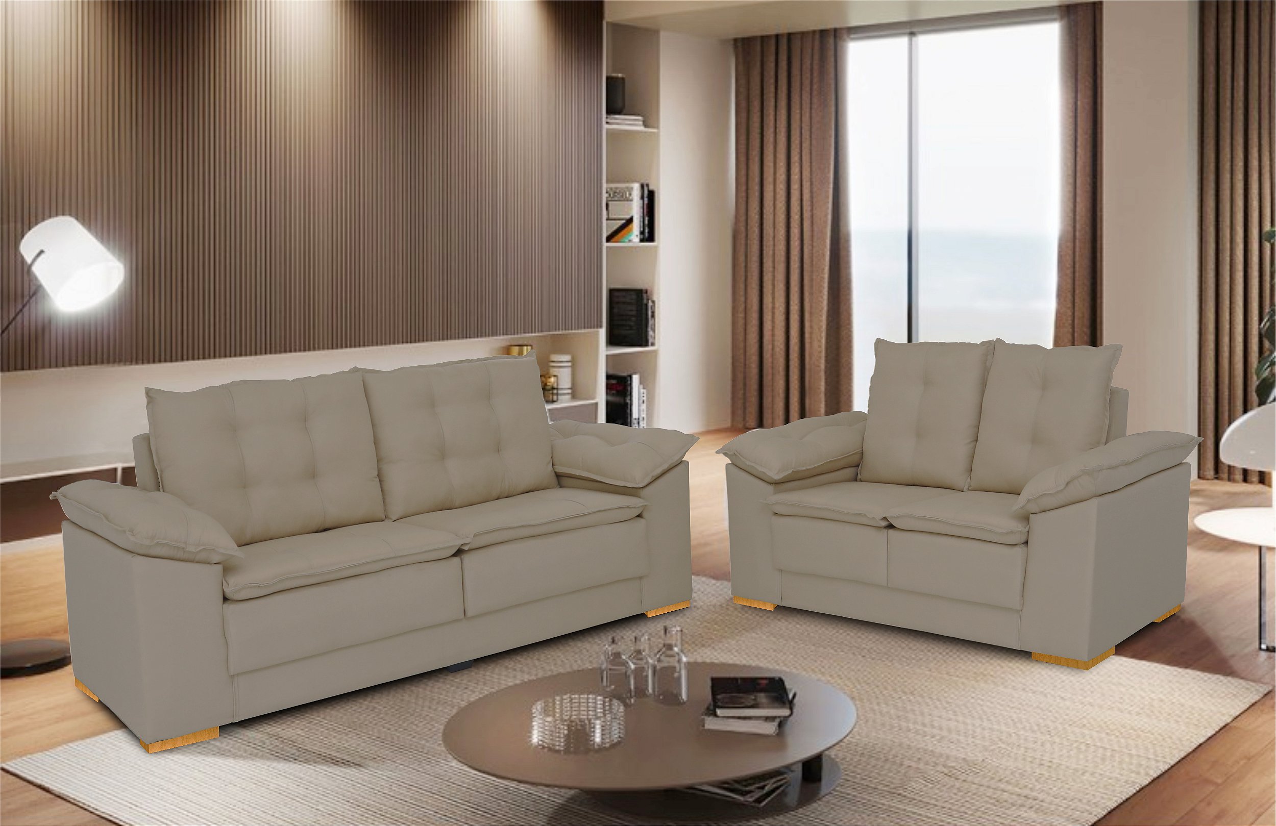 Os pés em madeira completam o design com um acabamento elegante e reforçam a robustez do sofá, tornando-o uma escolha perfeita para salas de estar que valorizam conforto, qualidade e estilo.