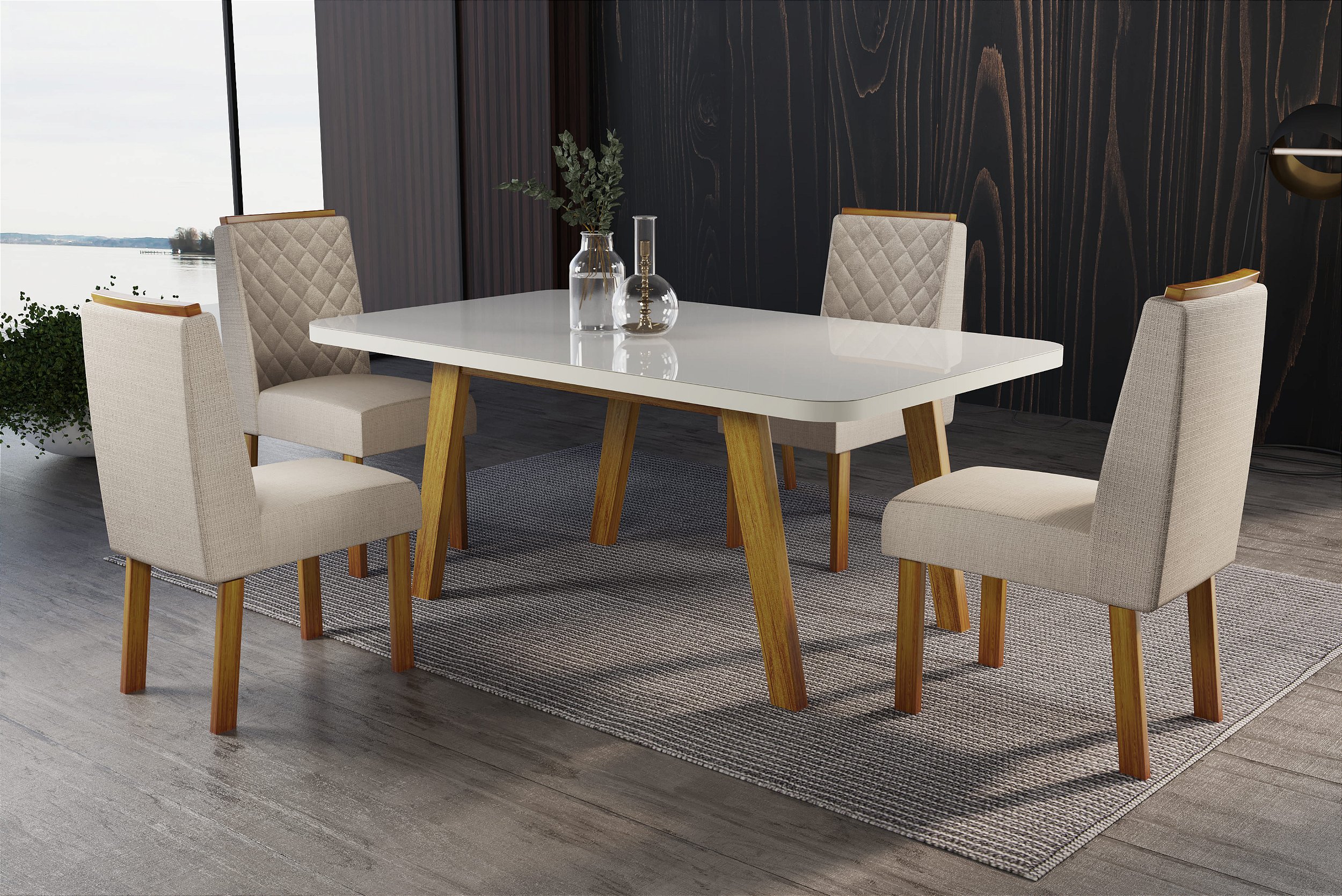 Conjunto Mesa B.P. Firenze C/4 Cadeiras Vigor TC Lin BG (120x80) - Off White/Natural