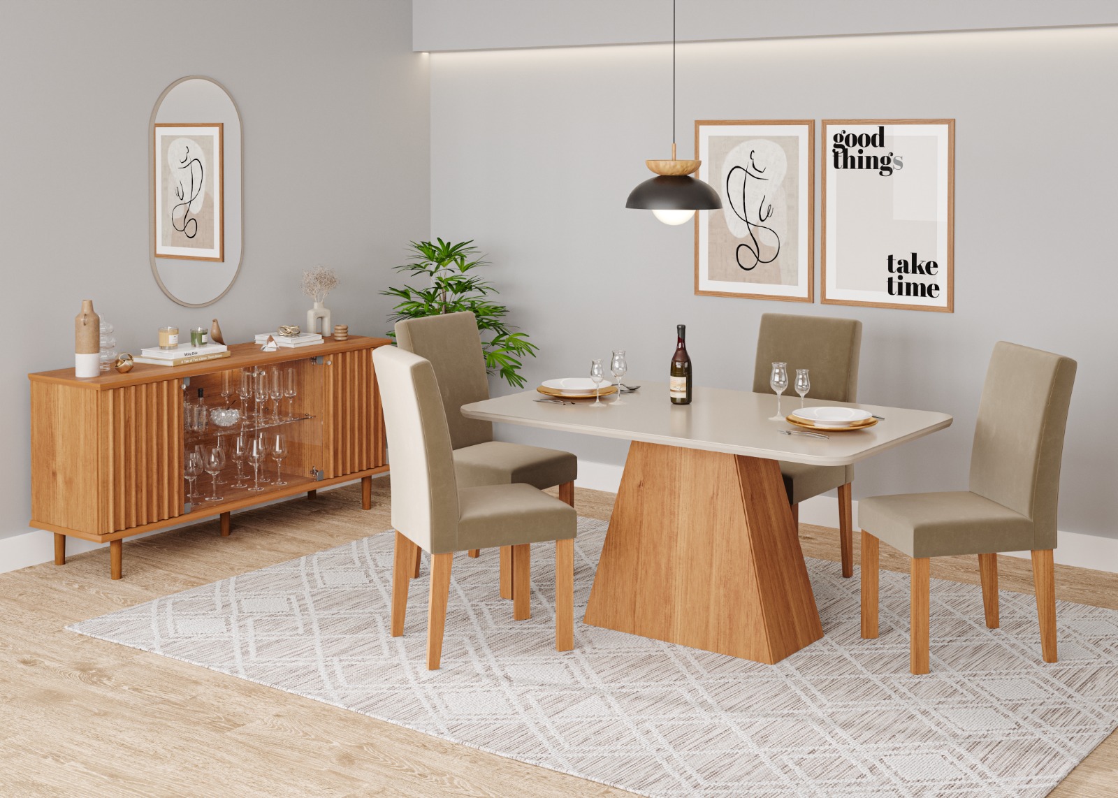 Ideal para salas de jantar compactas ou integradas, esse conjunto traz estilo e praticidade para o seu lar.