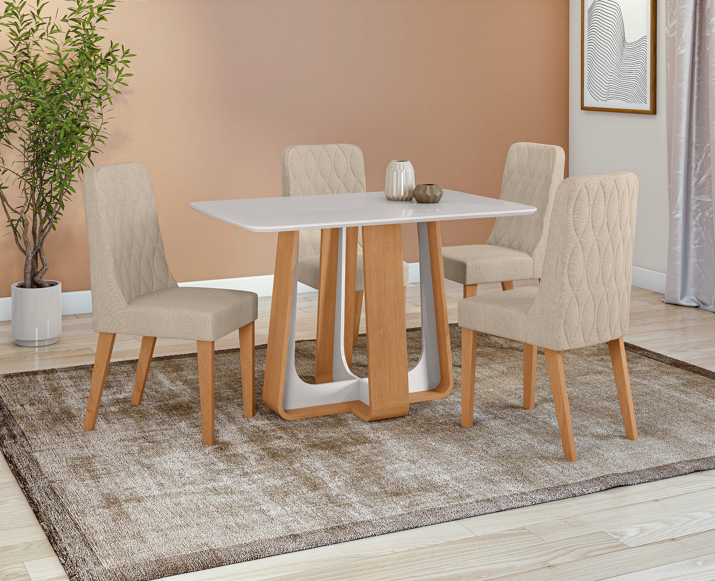 Conjunto de Mesa Lopas Sintonia com 4 Cadeiras Luar – Sofisticação e Conforto para seu Espaço