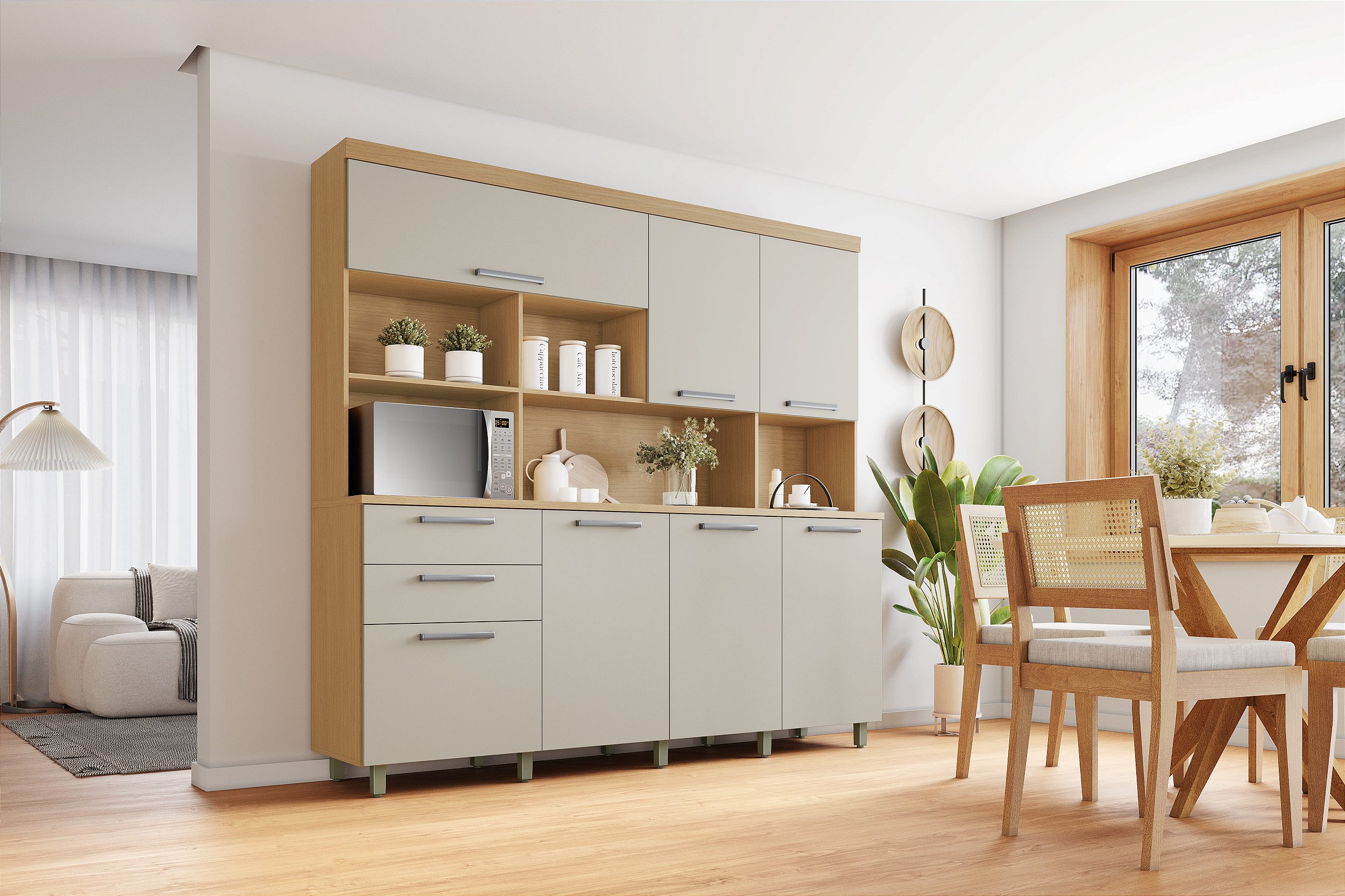 Kit Cozinha Nobreza 7P 2,10mt (500974) / Carvalho / Greige