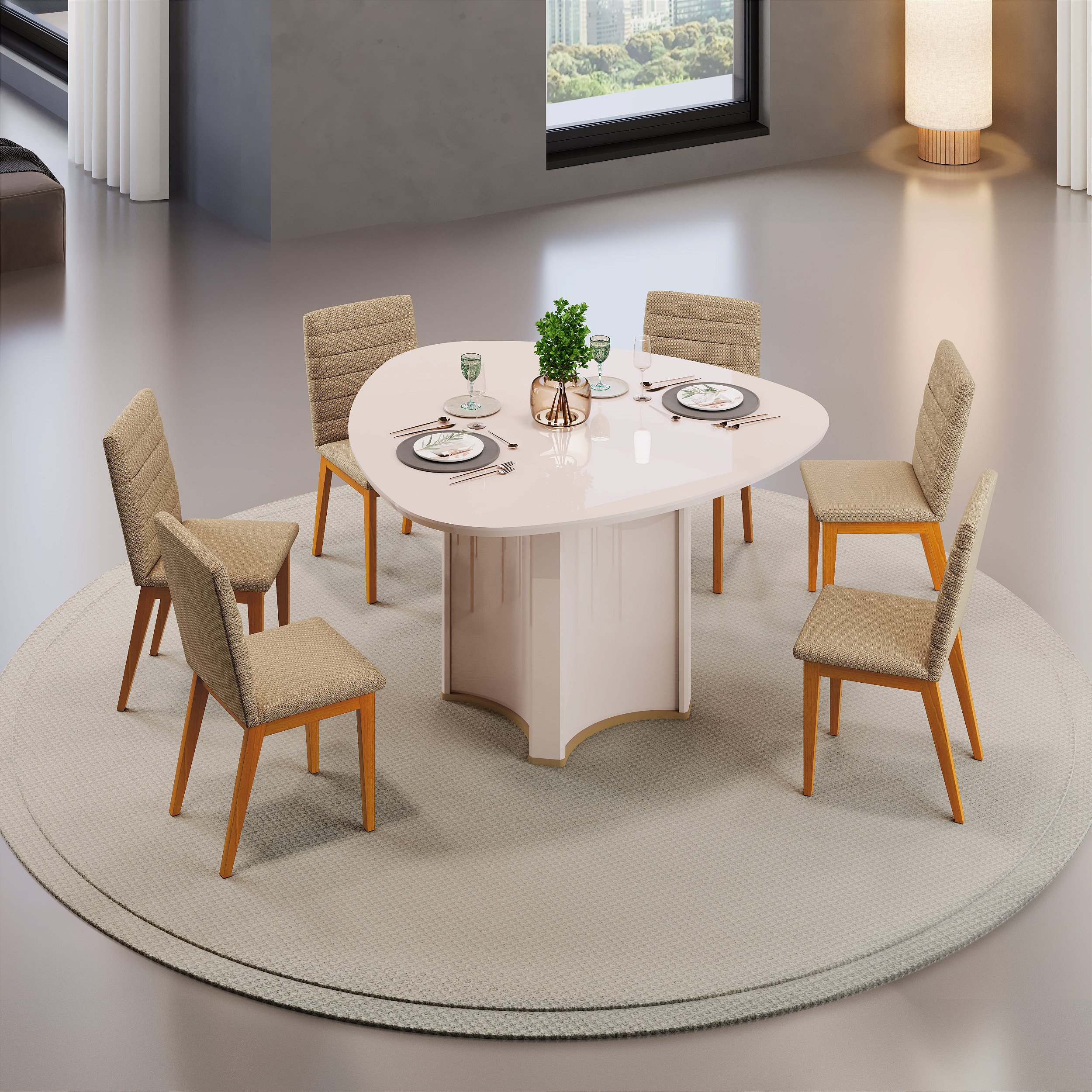 A Mesa DJ Chanel 1,36x1,36m é a escolha ideal para quem busca sofisticação e design contemporâneo. Seu tampo chanfrado de vidro traz leveza e requinte, enquanto a base com design orgânico em Off White confere elegância e fluidez ao ambiente. Com estrutura em MDF e MDP, é uma peça robusta, pensada para oferecer durabilidade e estilo à sua sala de jantar. Seu formato é ideal para reunir até 6 pessoas com conforto, tornando seus momentos à mesa ainda mais especiais.