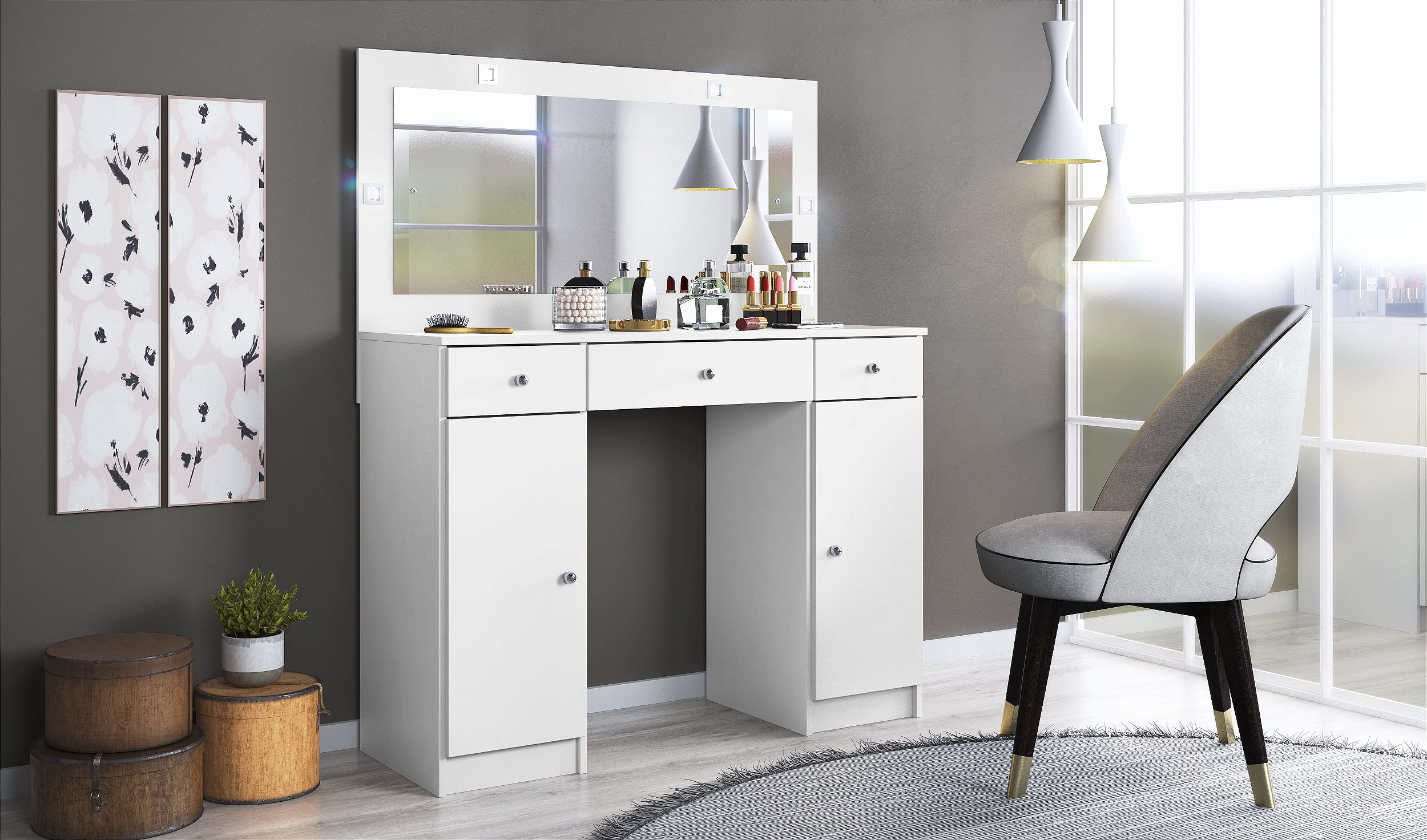 Com a Penteadeira Camarim Carisma, você não só ganha um móvel funcional e bonito, mas também transforma seu cantinho em um local organizado e iluminado, ideal para realçar sua rotina de beleza e estilo.