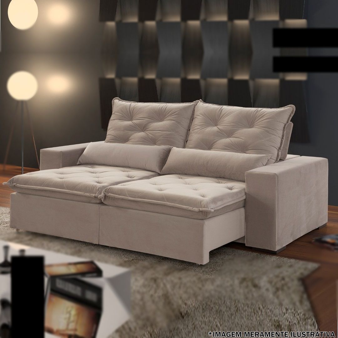 SOFÁ 3 LUGARES FLORENÇA RETRATIL E RECLINAVEL 2,30M TEC 200 VEL ./MARROM CLARO